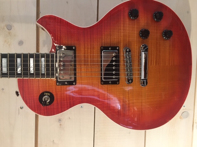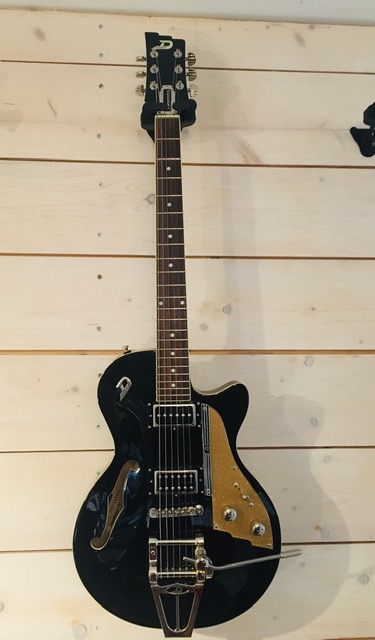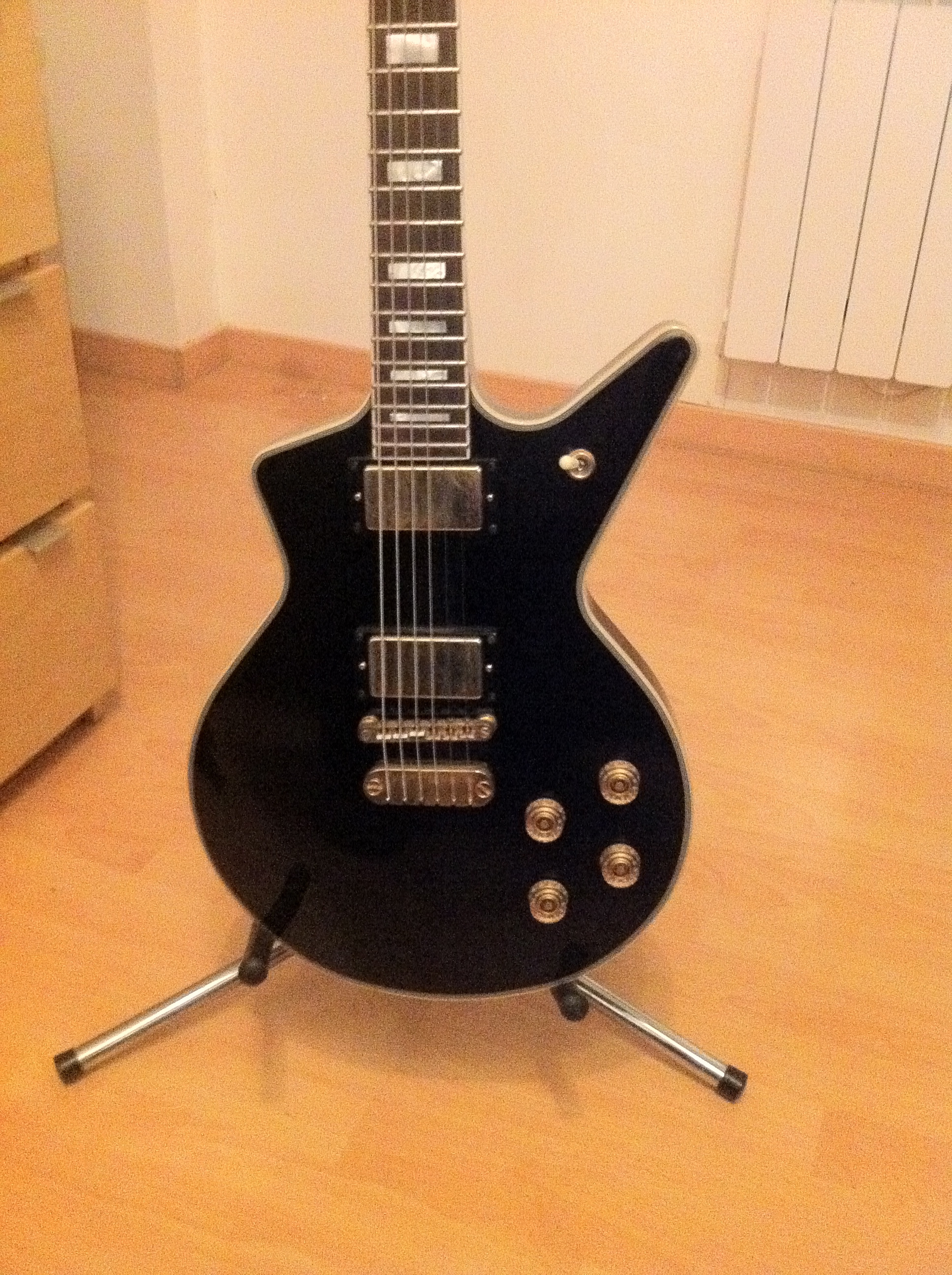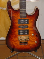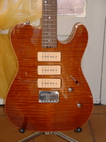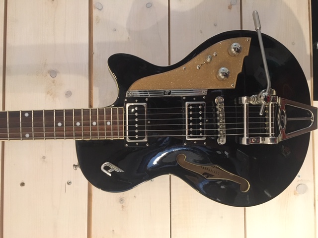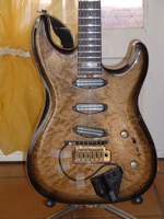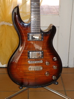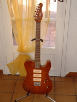 modèle signature deux DI MARZIO dont un double en aigu plus une position ( sur le bouton de tonalité ) ou les deux micros sont en série. une de mes grattes préférèes énorme |